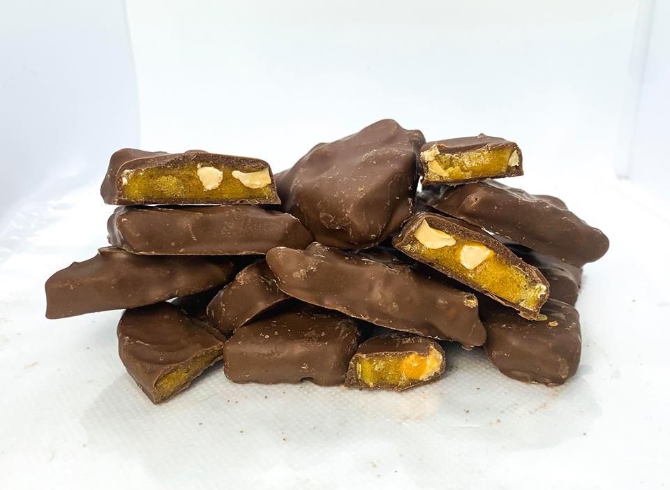 Crunchy Peanut Brittle bites covered in real milk chocolate.