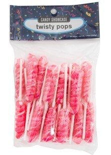 12 gram mini pink twisty shaped lollipops.