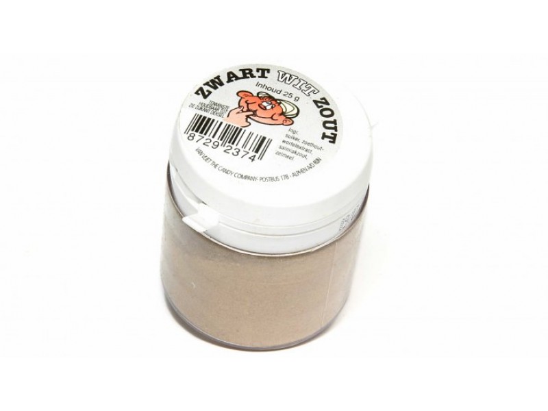 Licorice powder. Black/white salty powder. ( zwart, wit zout )
