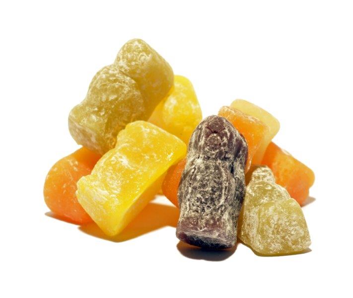 Sugar, glucose syrup, water, beef gelatine, modified maize starch, citric acid, natural flavourings, natural colours, vegetable concentrates, maize starch.